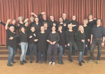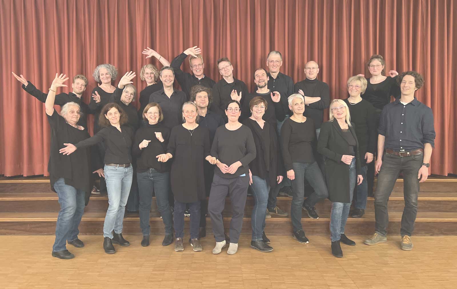 Derzeit sind wir ein bunter Haufen von 27 Sänger*innen zwischen 35 und 70 Jahren und haben uns zum Ziel gesetzt, unter der professionellen und engagierten Leitung von Felix Konetschny bei unseren Auftritten neben Chorstücken aus allen erdenklichen Genres und Epochen auch kurze Szenen, Texte, Lyrik, Soli, Stücke in kleinerer Besetzung und einfache Choreografien zu einem gemeinsam gewählten Thema auf die Bühne zu bringen. Neben den wöchentlichen musikalischen Proben möchten wir uns daher auch in den Bereichen Stimme und Szene regelmäßig weiterbilden. Wichtig sind uns dabei immer Spaß und Abwechslung, aber auch Präzision und guter Ensembleklang.